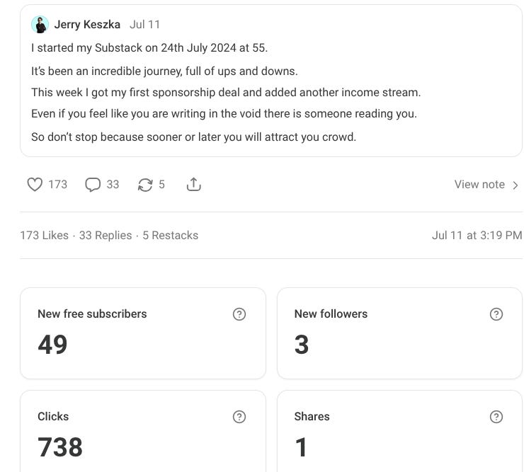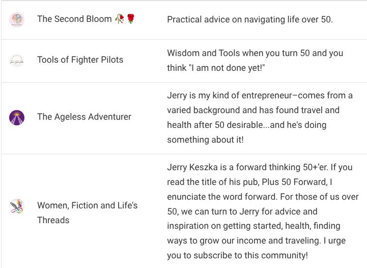 One of my greatest successes is undoubtedly inspiring a community member to start his own Substack at the age of 70.
