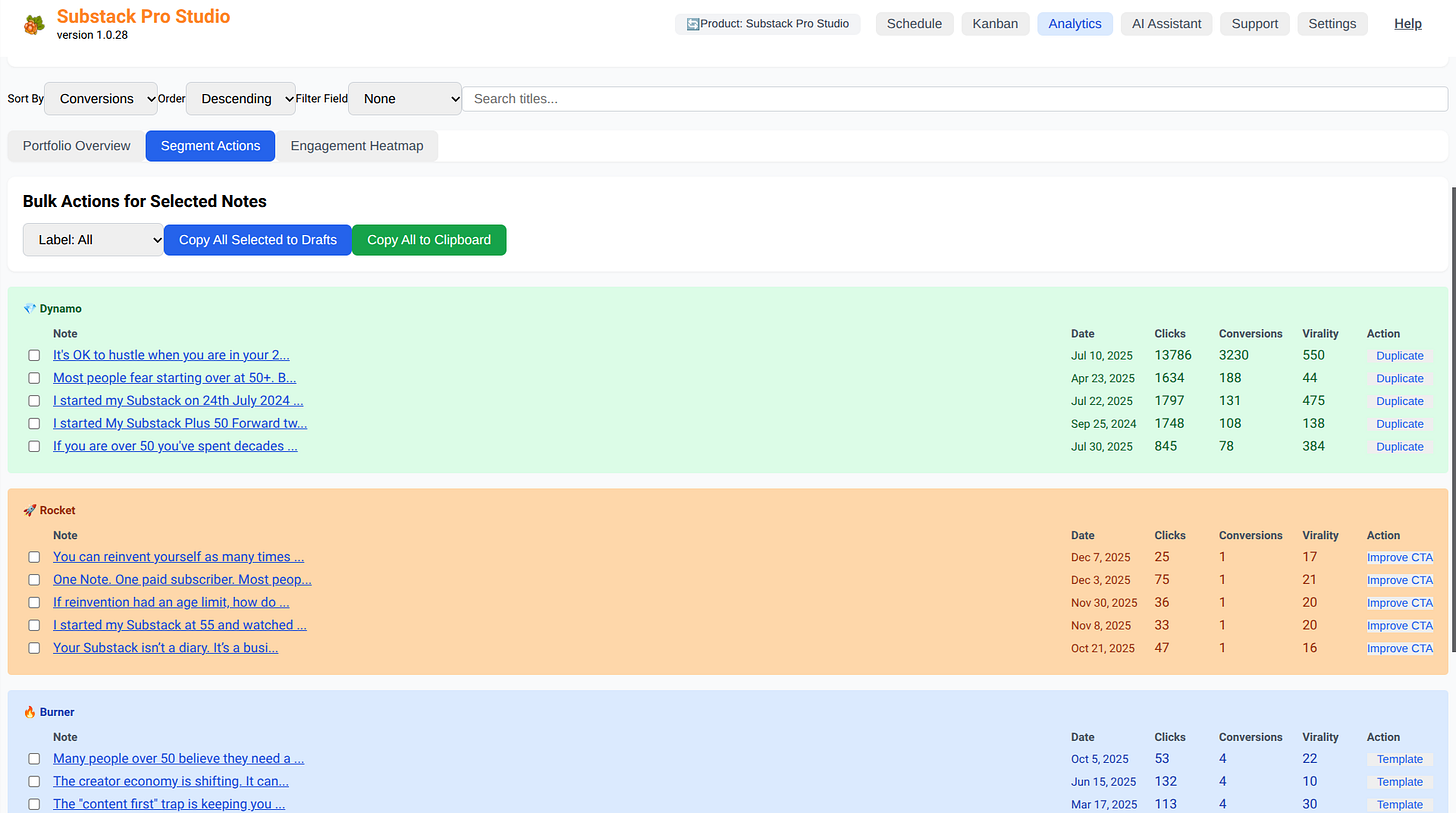 Finn Tropy Substack Pro Studio. It's been a game-changer for my Substack growth—showing me what actually works, helping me schedule Notes automatically, and giving me frameworks I can reuse forever.