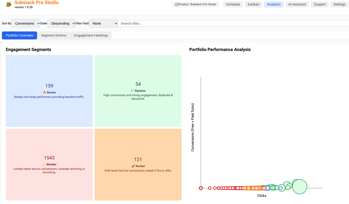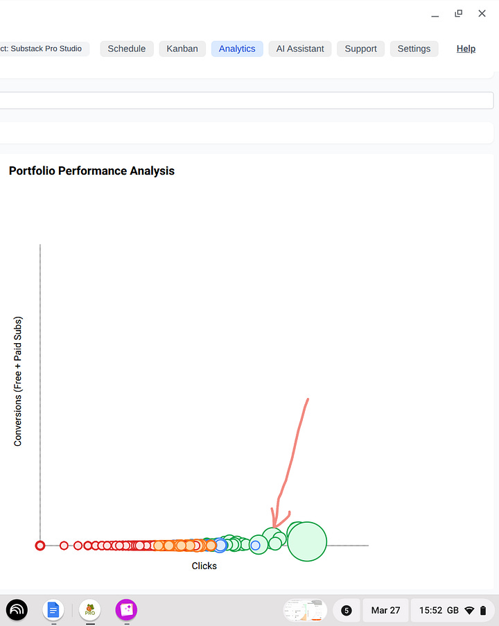Each bubble in my dashboard represents a specific Note — so I can click on any of them and remember exactly what I wrote. Precise. No guesswork. No scrolling through months of drafts to find “that one that worked.”